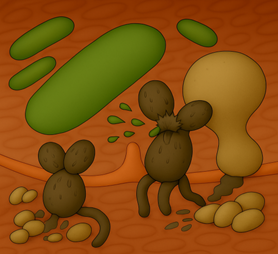Pathogens such as Clostridia (Grey Cells) excrete toxins that in turn cause animals to become sick.
