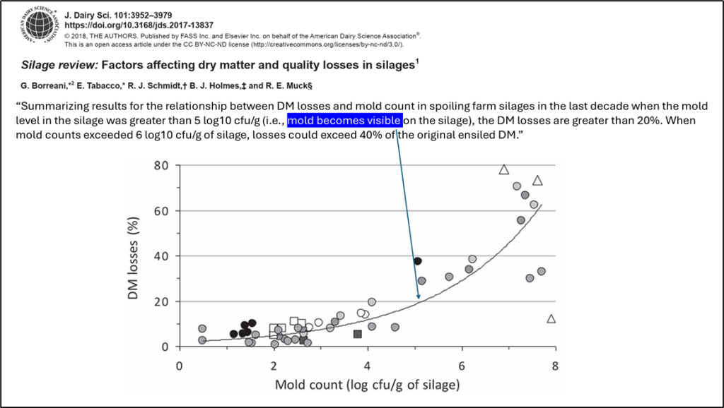 Research shows that if you can see some surface spoilage you have real losses of 20-40% of dry matter in the top surface.